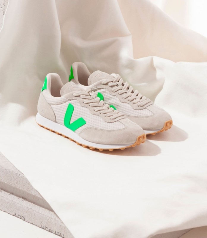 επάνω μέρος: εξάμες (70% οργανικό βαμβάκι & 30% ανακυκλωμένος πολυεστέρας)- πάνελ από δέρμα και υδατοαπωθητικό σουέτ- Logo V κατασκευασμένο από καουτσούκ - επένδυση σε ζέρσεϊ (33% οργανικό βαμβάκι & 67% ανακυκλωμένος πολυεστέρας)- εσωτερική σόλα από άγριο καουτσούκ και άλλα συνθετικά υλικά- σόλα από άγριο καουτσούκ από το δάσος της Αμαζονίας 20% κατασκευασμένη στη Βραζιλία, στην περιοχή του Πόρτο Αλέγκρε
