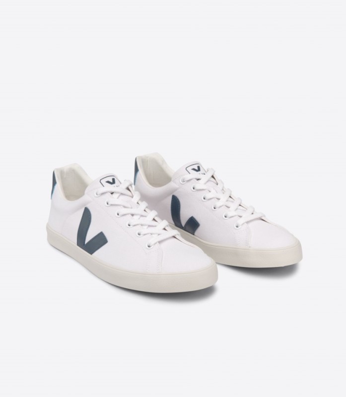 επάνω μέρος: οργανικό βαμβάκι (100%)πάνελ: επικαλυμμένος καμβάςλογότυπο V: απορρίμματα από καουτσούκ και ρύζι (22%)εσωτερική σόλα: αμαζονικό καουτσούκ, ζαχαροκάλαμο, ανακυκλωμένο E.v.a.** και οργανικό βαμβάκιεξωτερική σόλα: αμαζονικό καουτσούκ, υπολείμματα ρυζιού (22%) και ανακυκλωμένο καουτσούκ (12%) επένδυση και κορδόνια: οργανικό βαμβάκι ( 100%) Made In Brazilο καμβάς είναι κατασκευασμένος από 100% πιστοποιημένο οργανικό βαμβάκι, χωρίς τη χρήση φυτοφαρμάκων ή χημικών λιπασμάτων. από το 2004 έως το 2020, η Veja αγόρασε σχεδόν 642 τόνους βιολογικού βαμβακιού. το βαμβάκι καλλιεργείται στη Βραζιλία και στο Περού από ενώσεις που σέβονται τους ανθρώπους και το περιβάλλον, σύμφωνα με τις αρχές του δίκαιου εμπορίου.