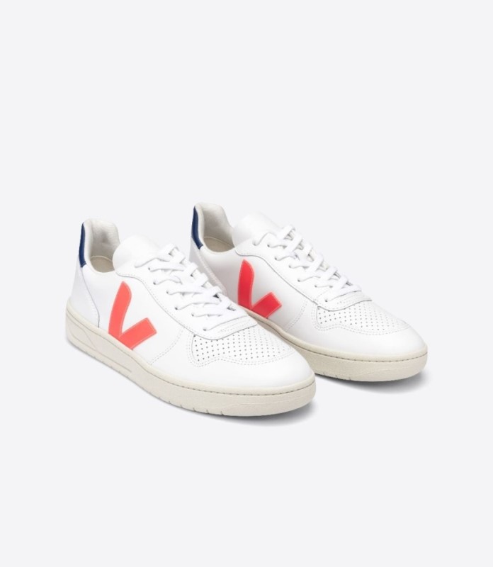 Veja V-10 δέρμα λευκό πορτοκαλί φλούο κοβάλτιο